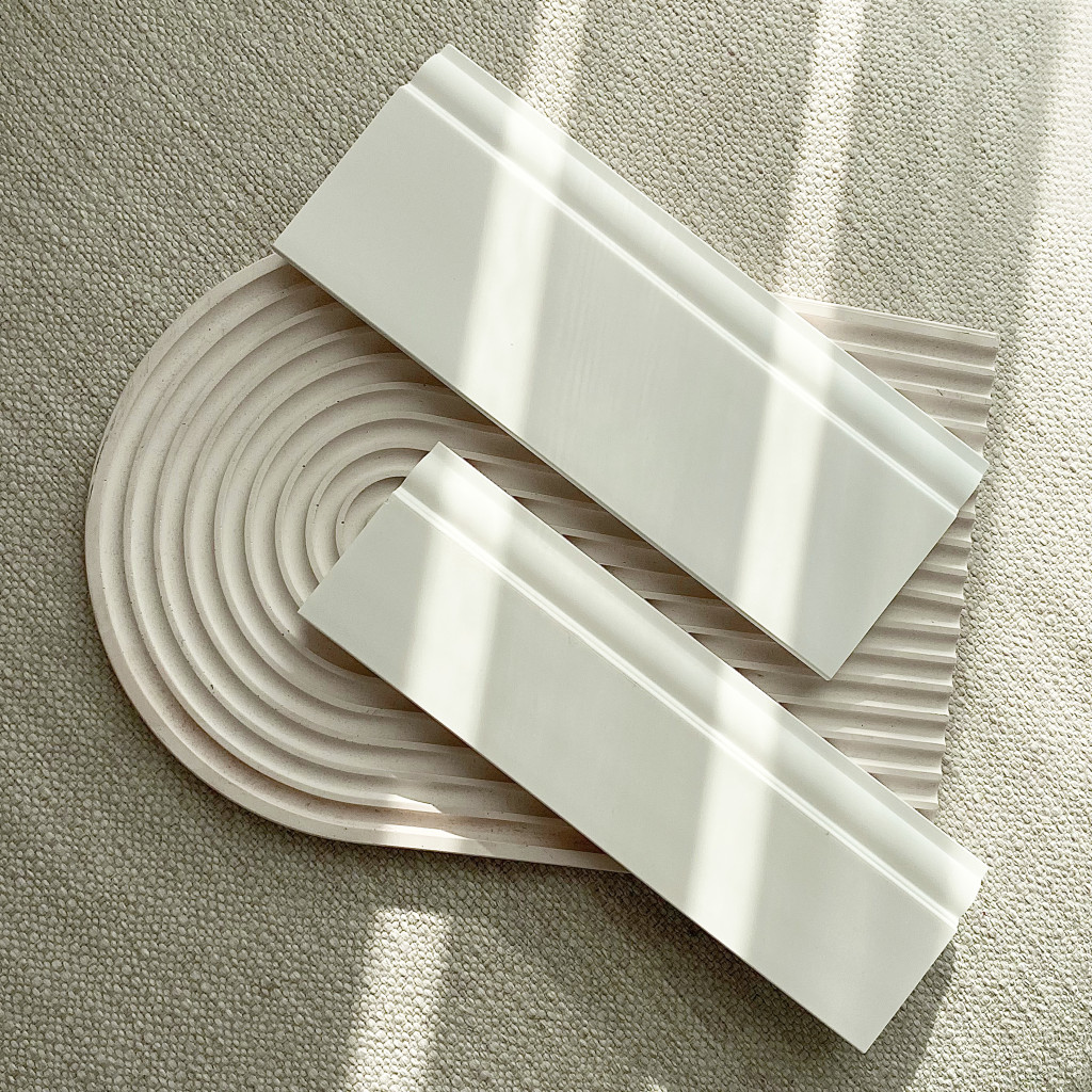 Im Zeichen der Umweltfreundlichkeit hergestellt, bestehen diese Designsockelleiste zu 92 % aus recycelten Materialien. Sie sind besonders leicht, lassen sich mühelos auf Maß zuschneiden und eignen sich sowohl für Wand- als auch Deckenflächen.