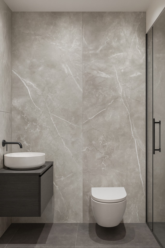 Die dekorativen SPC-Wandpaneele Murèlle aus Stone Plastic Composite sind 100 % wasserfest, formstabil und stoßbeständig. Ideal für Bad, Küche, Vorraum oder Wohnzimmer – mit einer schnellen, sauberen Montage ohne Nassarbeiten und einfacher Pflege (ein feuchtes Tuch genügt). Die Dekorkollektion (Marmor, Stein, Beton) sorgt für ein modernes Erscheinungsbild mit minimalen Fugen.