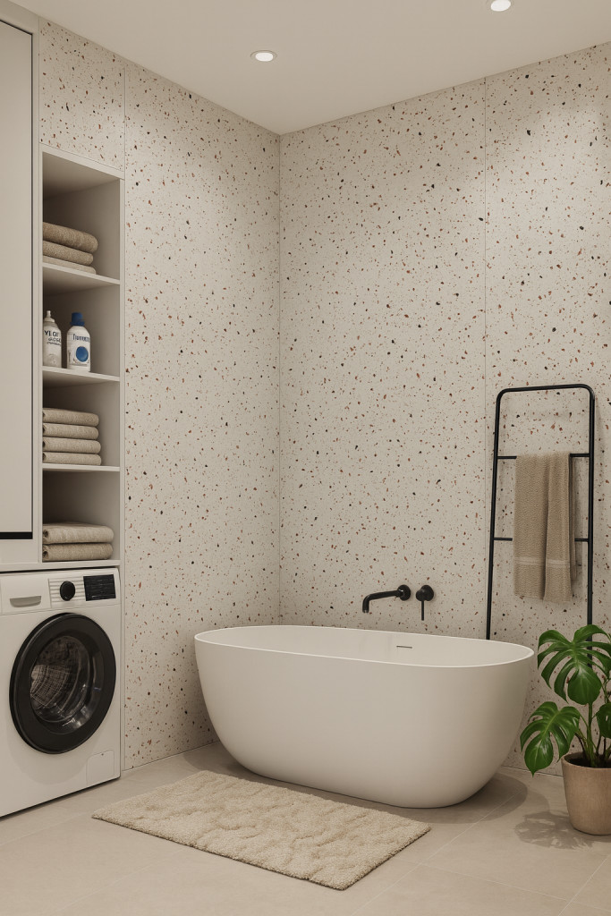Die dekorativen SPC-Wandpaneele Murèlle aus Stone Plastic Composite sind 100 % wasserfest, formstabil und stoßbeständig. Ideal für Bad, Küche, Vorraum oder Wohnzimmer – mit einer schnellen, sauberen Montage ohne Nassarbeiten und einfacher Pflege (ein feuchtes Tuch genügt). Die Dekorkollektion (Marmor, Stein, Beton) sorgt für ein modernes Erscheinungsbild mit minimalen Fugen.