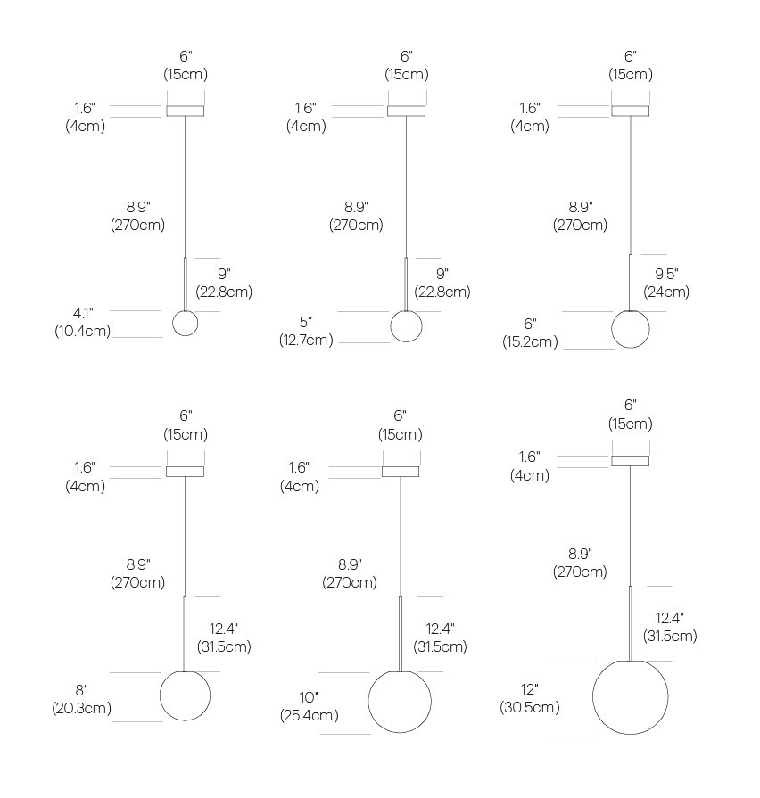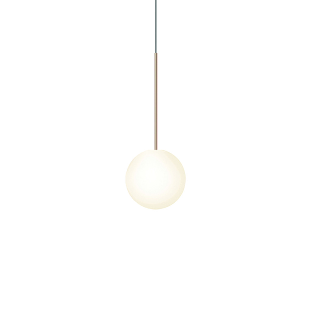 Der Bola Sphere Pendelleuchte ist die Basis für die Bola Kollektion und bietet ein elementares Zusammenspiel von Stab und Kugel. Der verführerische Schirm aus mundgeblasenem Opalglas ist in 7 verschiedenen Größen (4 Zoll (10 cm), 5 Zoll (13 cm), 6 Zoll (15 cm), 8 Zoll (20 cm), 10 Zoll (25,5 cm), 12 Zoll (30,5 cm) und 16 Zoll (40,5 cm) erhältlich gepaart mit einem Metallstab aus Chrom, Messing und Roségold sowie passenden Baldachinen.