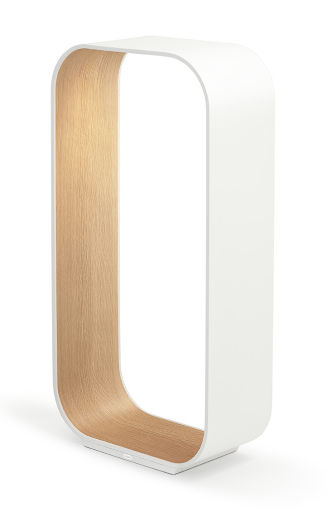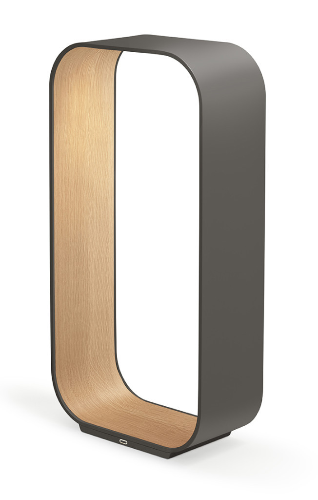 Das Innere der Contour-Leuchte, mit edlem Holz und feinem Stoff, eignet sich hervorragend, um Bücher oder andere wertvolle Gegenstände stilvoll abzulegen. Dank des integrierten USB-Anschlusses können zudem Geräte bequem aufgeladen werden.