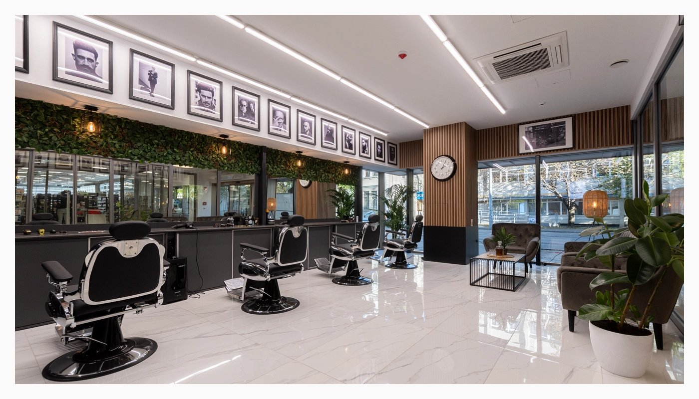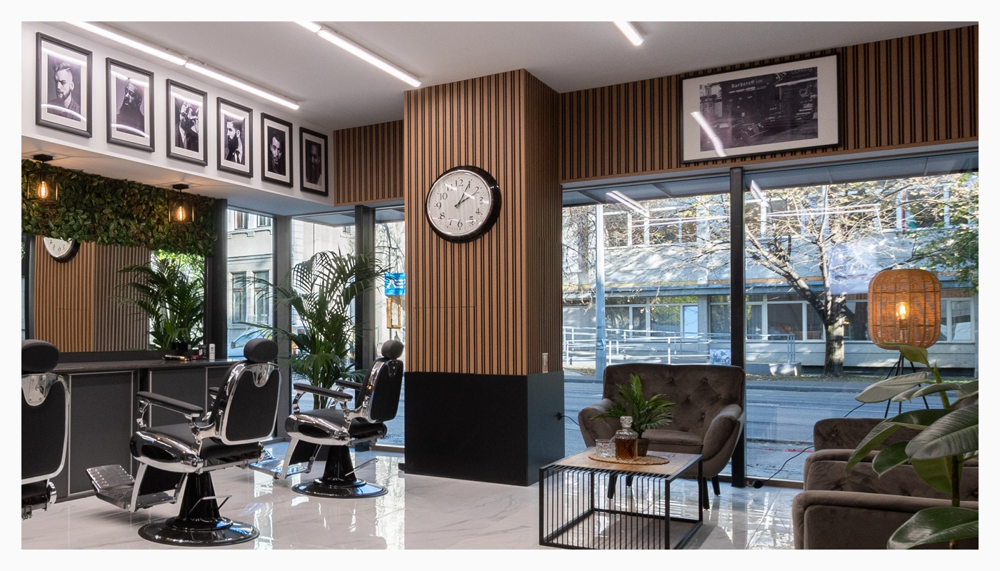 Stilvoll, pflegeleicht und absolut im Trend: In den Salons eines renommierten Herrenfriseur-Netzwerks setzen nun Lamelio-Wandpaneele ein starkes Design-Statement. Dank ihrer Wasserfestigkeit und einfachen Reinigung sind sie nicht nur praktisch, sondern auch ideal für den anspruchsvollen Salonalltag. Zum Einsatz kamen die edlen Designs Amber Antrazit, Olmo Black und Milo Oak Sonoma – für ein modernes Ambiente mit Charakter.