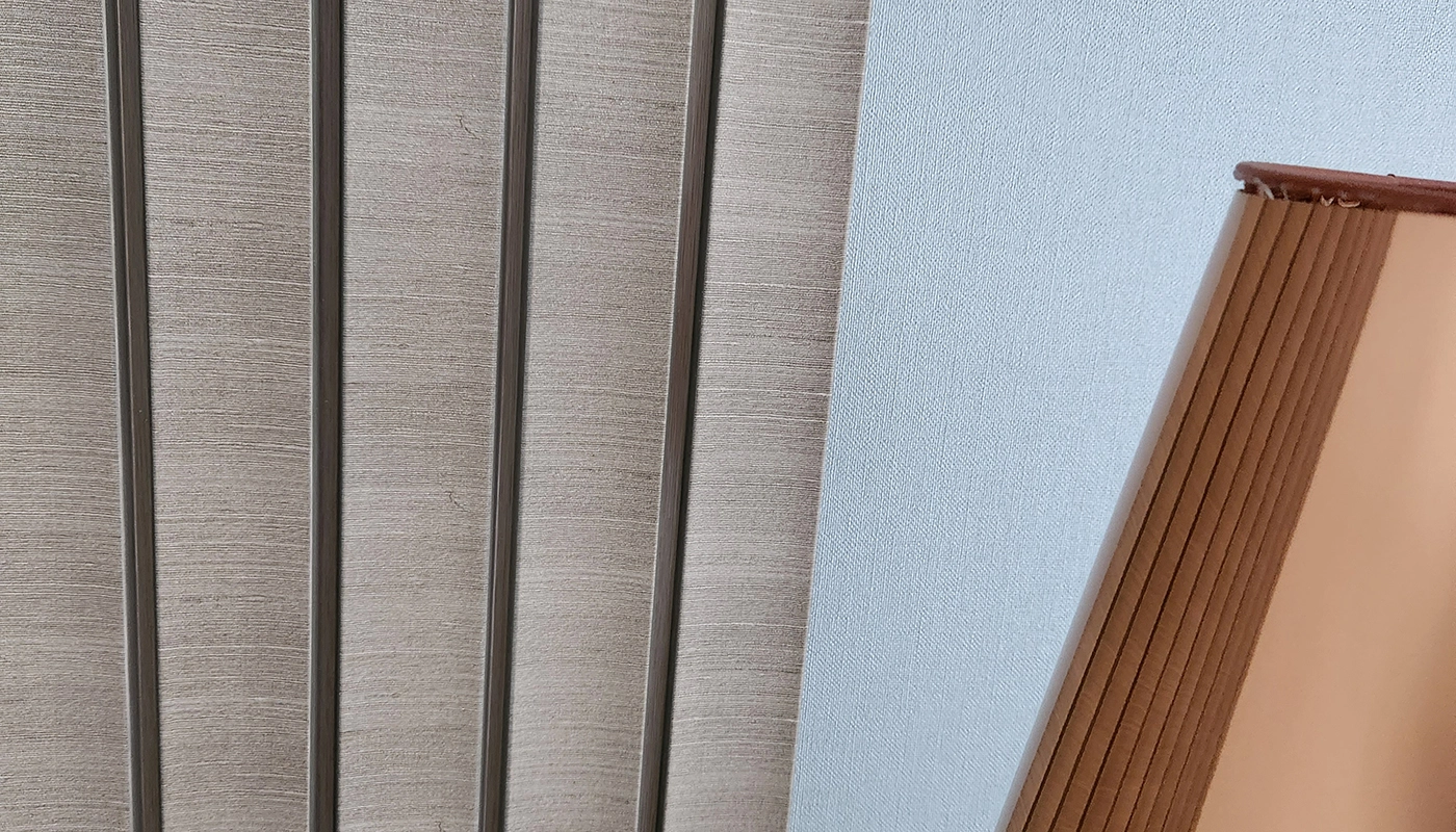 Die letzten Feinschliffe dieser stilvollen Schlafzimmer-Renovierung stammen aus der Feder einer Innenarchitektin. Während die Grundgestaltung des Raums erhalten blieb, wurden der Garderobenschrank mit versteckter Tür und die dekorative Wand neben dem Bett neu verkleidet. Die Wahl fiel auf die Lamelio-Wandpaneele in Amber Grey – eine perfekte Ergänzung zu den bestehenden Farben und Möbeln und ein eleganter Akzent für ein stimmiges Gesamtkonzept.
