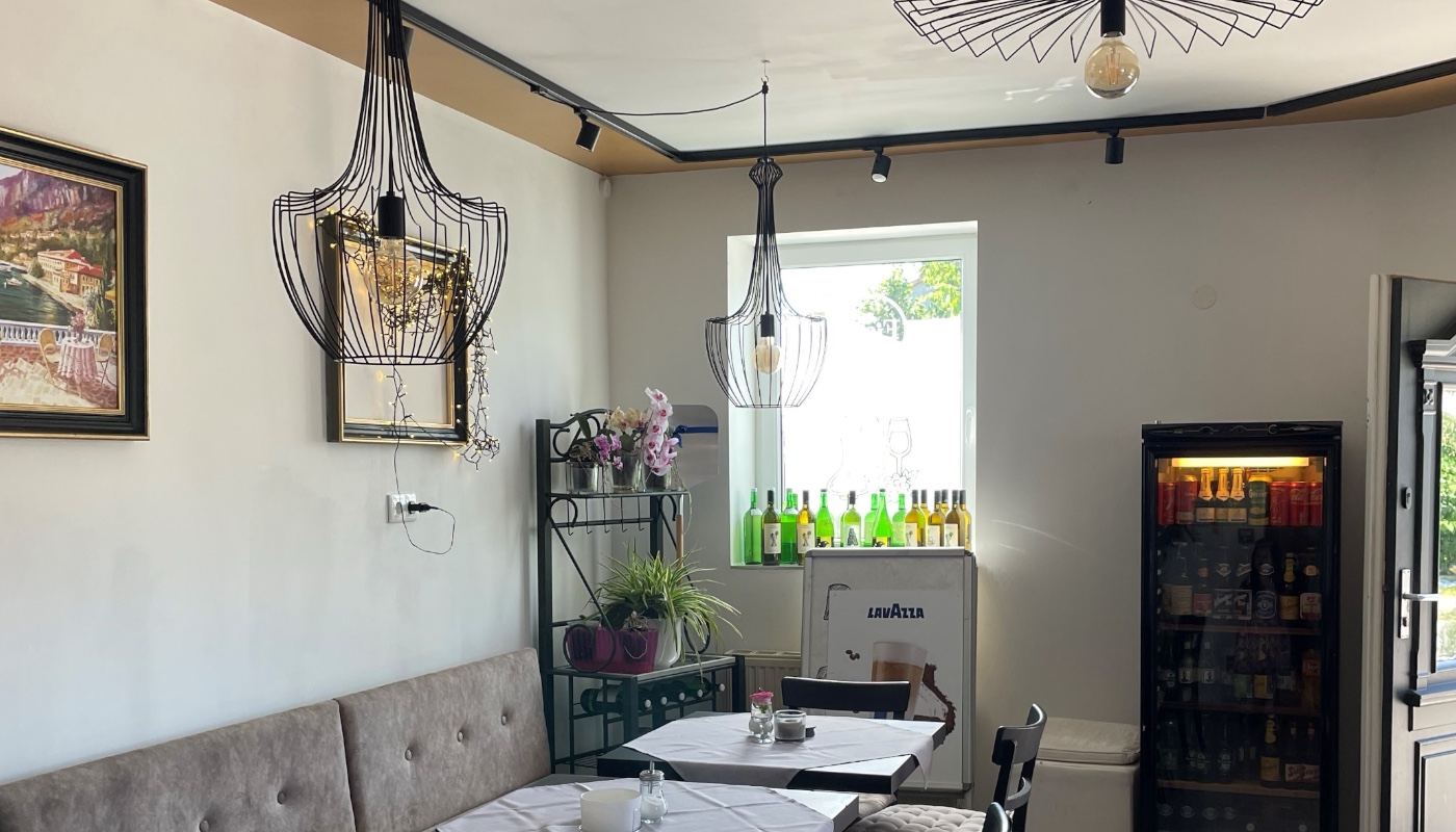 Für ein stimmungsvolles Gastronomieprojekt lieferten wir Wandpaneele und Beleuchtungslösungen. Die Grundbeleuchtung wird von einem modernen Schienensystem übernommen, während die stilvollen Pendelleuchten nicht nur funktional, sondern auch echte Hingucker sind. Die Thekenfront wurde mit pflegeleichten Lamelio-Wandpaneelen verkleidet – praktisch im Alltag und gleichzeitig ein optisches Highlight.